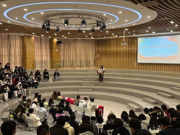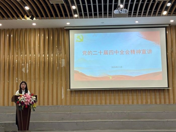 本网讯(经济管理学院 吴佳雯)为深入学习贯彻党的二十届四中全会精神,将“十五五”发展蓝图融入高校思政实践,11月20日,经济管理学院在6栋圆形报告厅召开专题宣讲会,学院党委副书记吕媛担任主讲人,各年级、各专业班委参会。