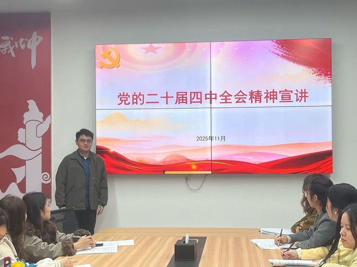 随后,魏甫龙副书记围绕全会精神核心要义系统宣讲,从时代背景、重大意义、主要成果三方面深入解读,并结合经济管理学科特色,重点阐释全会与学科发展、人才培养相关的部署要求。他特别提醒,辅导员要将全会精神学习与育人实践结合,通过学思践悟把握精神实质,立足岗位把理论成果转化为引导学生成长、助力专业发展的具体举措,避免“学用脱节”。