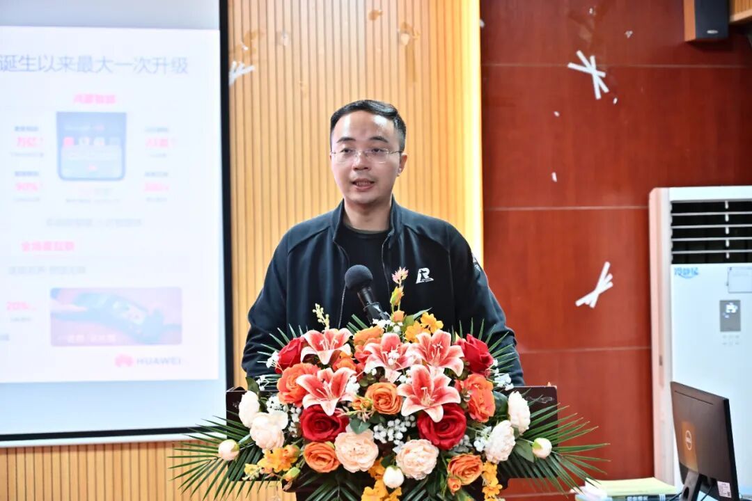 讲座开幕环节,学院党委书记赵宁致辞。他指出,ICT行业正深刻重塑着产业与教育生态,到2025年,全行业人才缺口预计将高达2000万。面对这一形势,学院已积极携手华为,共建了覆盖云计算、数据通信、鸿蒙等前沿方向的专业与微专业体系,通过将真实项目引入课堂,确保课程内容与岗位需求无缝对接。赵书记勉励全体同学,要学习华为精神,永葆求知欲、积极拥抱变革、勇于担当使命,在跨学科实战中培养“技术+业务+战略”的复合能力,为网络强国和数字中国建设贡献青春力量。