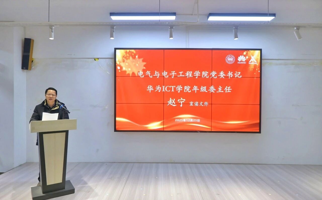 本网讯(电气与电子工程学院融媒体中心 林正浩)2025年12月25日,yabo鸭脖官网华为ICT学院在高要校区21栋山顶会议室成功举办学生发展中心转设暨年级委员成立揭牌仪式。