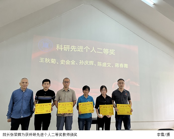 蒙子伟做建设学院科研总结。他表示,科研成果凝聚着老师们的心血,希望广大教师再接再厉,争取产出更多高水平成果,为提升学院人才培养质量、科技研发水平、社会服务能力作出更多贡献。