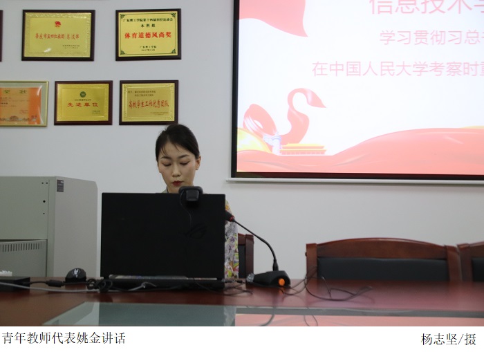 青年教师代表姚金、曹华娟、邹景荣老师先后分享心得体会。他们表示将努力做好青年学生思想政治教育的坚定“领路人”,进一步提高育人质量。