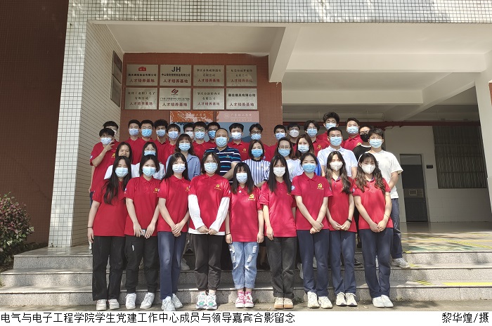 陈强代表党总支宣读《关于成立学生党建工作中心的通知》、《电气与电子工程学院学生党建工作中心部门职责》两个文件。陈文华、陈强、叶运黎分别为第一届学生党建工作中心学生干部、学生党支部2019级干事颁发聘书。