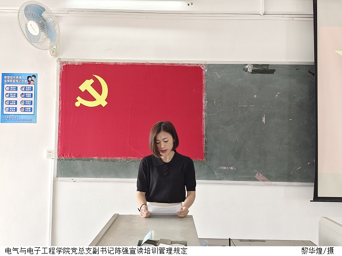 本网讯(电气与电子工程学院 叶运黎)为进一步提高青年大学生的政治素养和理论水平,推动党史学习教育常态化长效化,4月12日下午,电气与电子工程学院在8504教室举行2022年上半年入党积极分子培训班开班典礼。电气与电子工程学院党总支书记陈文华、副书记陈强,电气与电子工程学院的140名入党积极分子学员参加。