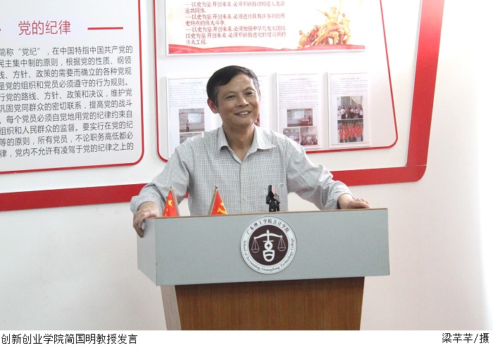 随后,简国明作讲话,对会计学院近几年在创新创业类大赛中取得的成绩表示赞赏,同时对筹备大赛的工作人员表示感谢,同时希望同学们通过比赛不断提高创新意识,并预祝本次比赛圆满成功。