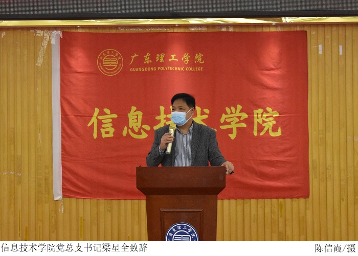 党总支书记梁星全作总结发言,他希望同学们树立远大理想,勇攀科技高峰,掌握先进的科学知识,打下扎实的专业基础,做到“我敢闯,我会创”,为创新科技水平的提高做出一定贡献。