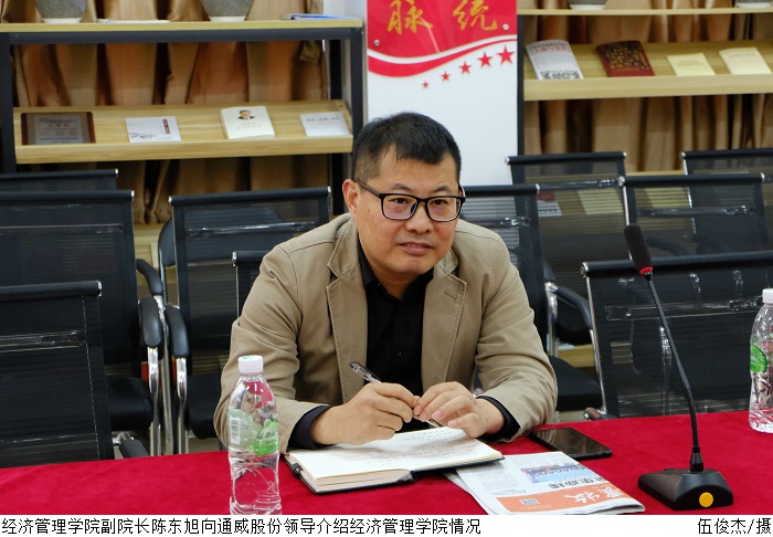 陈东旭在会上向通威股份三位负责人介绍了经济管理学院各专业情况。他表示,校企合作可以加强科研育人,强化学生的岗位责任意识,实现优势互补。