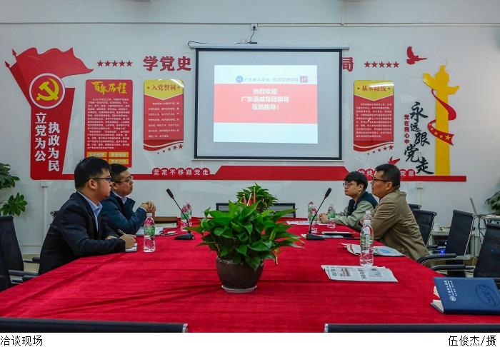 本网讯(经济管理学院新闻中心 郑洁薇)12月7日上午,经济管理学院在党员活动室4103召开校企合作座谈会。副院长陈东旭,办公室主任彭媛媛、人力教研室主任黎传熙、物流教研室主任黄永福,通威股份华南一区人力资源总监郑丹、广东通威人事经理唐海云、人事主管邬佳欣参会。