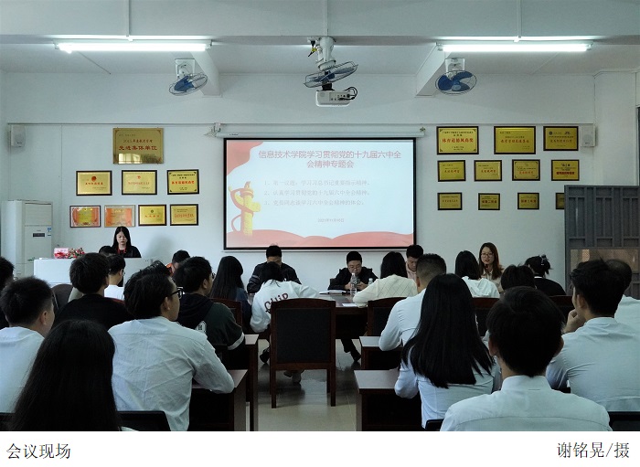本网讯(信息技术学院 林淑卿)11月16日,信息技术学院在振华楼203室召开学习贯彻党的十九届六中全会精神专题学习会,党总支书记梁星全主持,全体教职工参加。