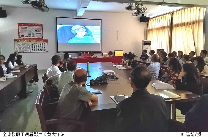 观影结束,党总支书记陈文华提出,全体教职工要以黄大年同志为榜样,学习他心有大我、至诚报国的爱国情怀;学习他教书育人、敢为人先的敬业精神;学习他淡泊名利、甘于奉献的高尚情操,从现在做起、从自己做起、从本职岗位做起,不忘初心,做人民满意的教师。