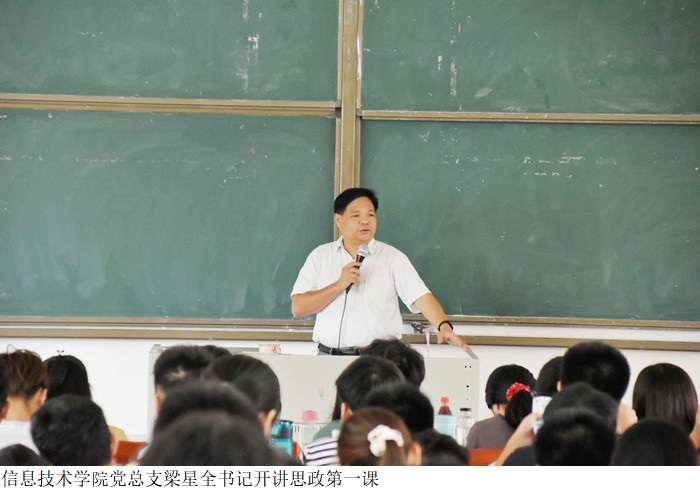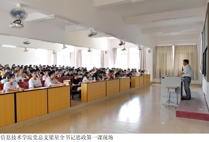 本网讯(信息技术学院 林淑卿)为深入贯彻习近平新时代中国特色社会主义思想及习近平总书记“七一”重要讲话精神,引导学生树立远大理想,信息技术学院党总支梁星全书记于9月16日在鸭脖官网振华楼501室为2021级新生讲授思政第一课。