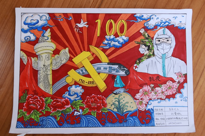 活动得到同学们的踊跃参与。本次参赛作品分为绘画组和视频组。同学们用颜料在纸上绘制出党的百年进程,用镜头拍摄出党的奋斗历史,生动再现了党的光辉岁月,每一份作品从不同角度凸显了同学们对党和国家的无限热爱和赞颂之情。