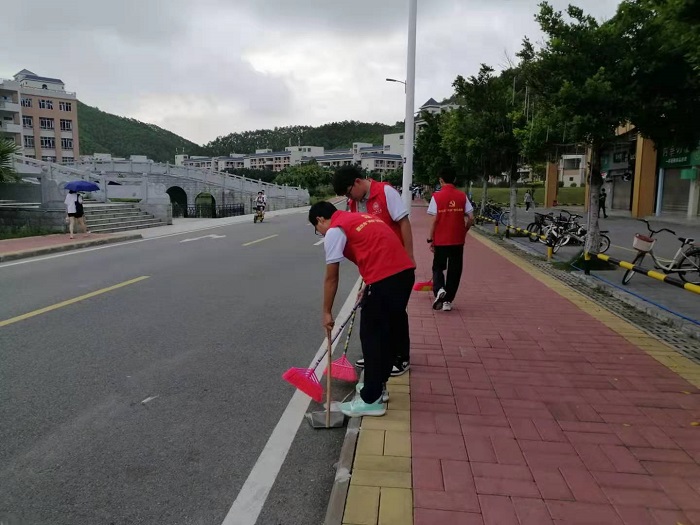 本网讯(信息技术学院 杨淙荣)为巩固文明城市创建成果,弘扬乐于奉献的志愿精神,创造文明清洁的校园环境。信息技术学院党建服务中心开展清扫校园活动,参与本次活动的有信息技术学院党总支梁星全书记、冷云峰副书记、学生党支部书记胡娇铃老师、党建服务中心全体成员、建党对象以及入党积极分子。
