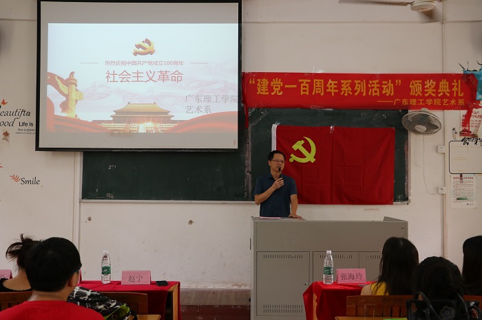 本网讯(艺术系党支部 钟雨垌)5月13日中午,艺术系于6栋103课室召开了热烈庆祝中国共产党100周年党史学习会议,本次会议参会人员有艺术系党总支赵宁书记、学工部长吴云老师、学生党支部书记易晶晶老师、分团委书记路正玉老师、奖助贷负责人张海玲老师、易班工作站负责人涂瀛老师、考证负责人龙媛老师、辅导员余丽嘉老师以及艺术系学生党支部全体成员。