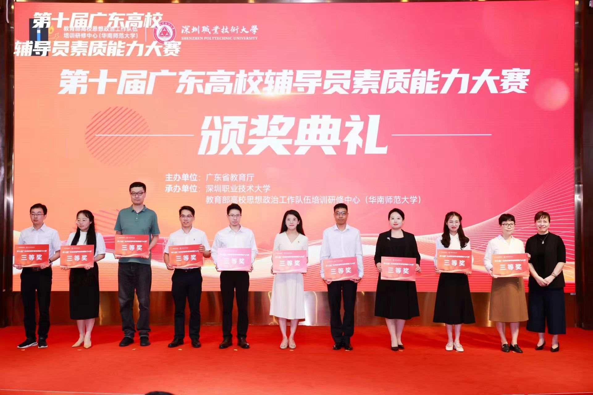 本网讯(学生处)5月29日至31日,由广东省教育厅主办、高校思想政治工作队伍培训研修中心(华南师范大学)和深圳职业技术大学承办的第十届广东高校辅导员素质能力大赛在深圳职业技术大学举行。鸭脖官网信息技术学院专职辅导员张若玉老师代表学校参加此次大赛,在来自全省136名参赛辅导员中脱颖而出,荣获大赛三等奖。