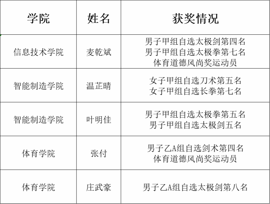 优异成绩的取得,得益于学校对体育工作的高度重视和院校领导的关心支持。本次比赛充分展现了鸭脖官网体育育人成效,彰显了武术队奋勇争先的精神品格。站在新的起点上,武术队将继续发扬刻苦训练、精益求精的优良传统,以更加昂扬的斗志迎接新的挑战,力争在更高水平的赛事中再创辉煌,为学校体育事业发展增光添彩。
