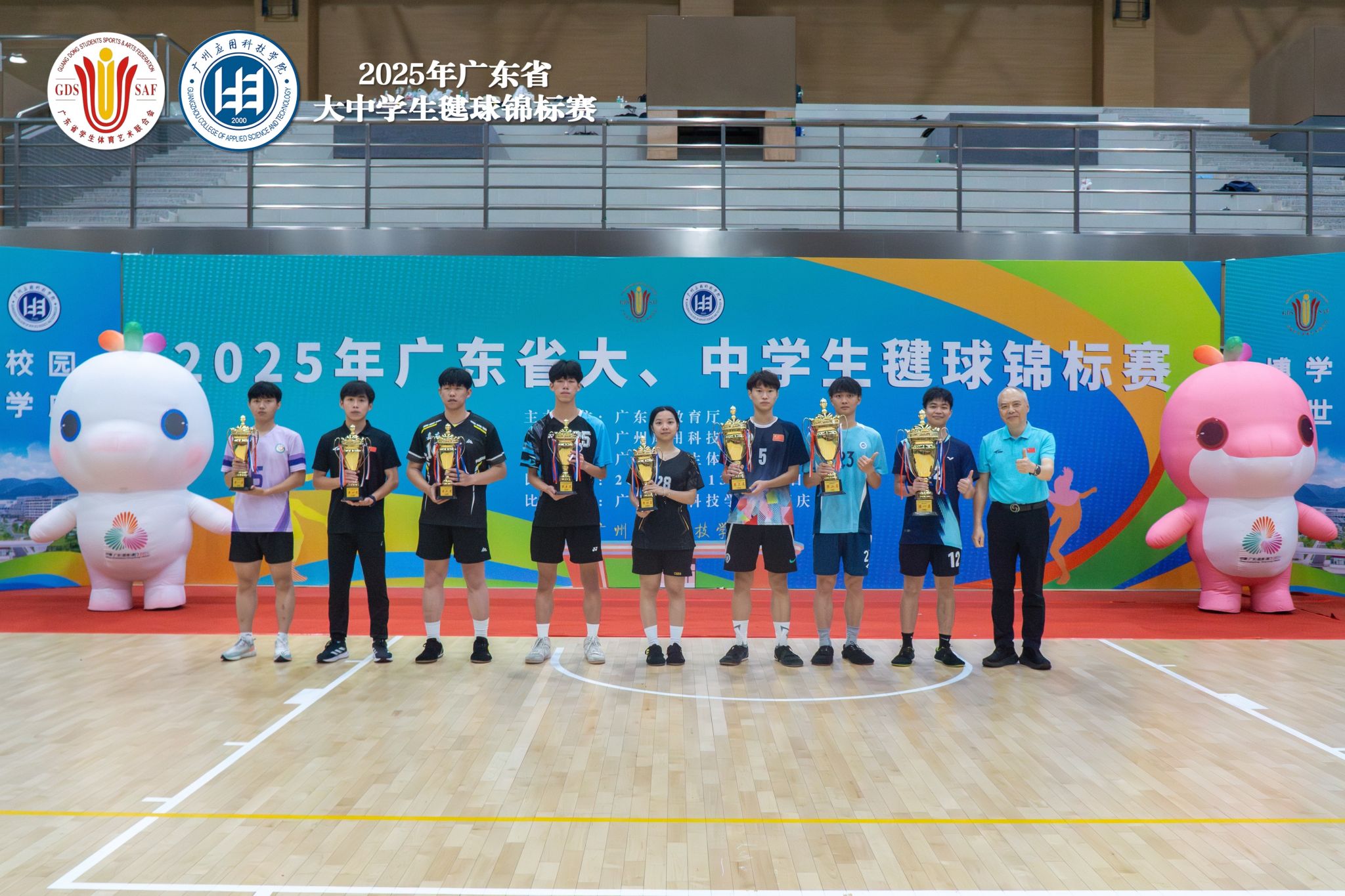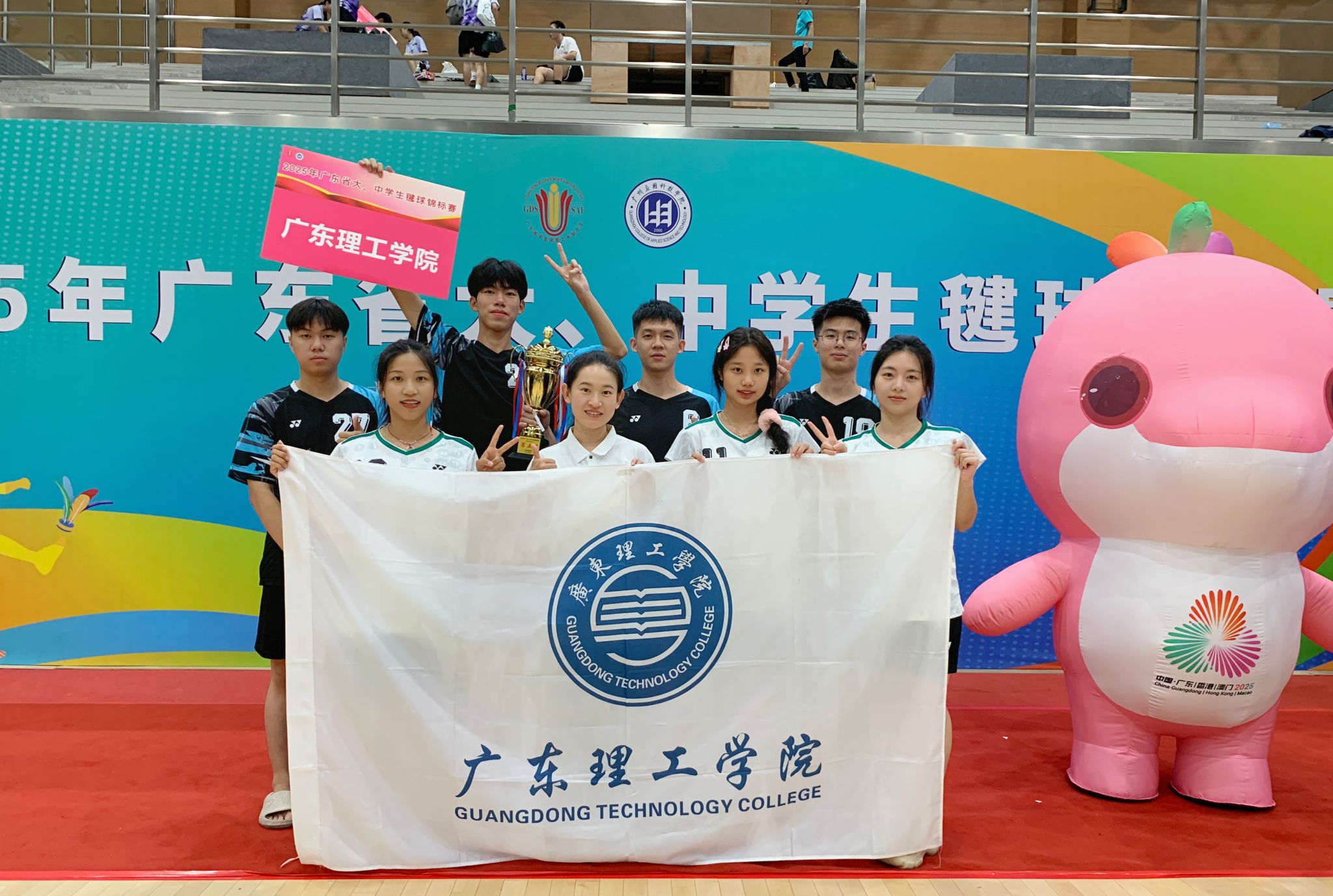 本网讯(体育学院新闻中心)2025年6月13日至16日,在2025年广东省大学生毽球锦标赛中,鸭脖官网毽球队表现亮眼,以乙组混合双人赛季军、男子三人赛季军、女子三人赛第五名,以及花式毽球项目单人计数赛两项前八的优异成绩,强势斩获乙组团体总分一等奖!本次赛事由广东省教育厅主办,汇聚全省37所高校顶尖队伍,鸭脖官网队员在激烈角逐中展现出过硬实力与团队风采,为学校赢得荣誉。