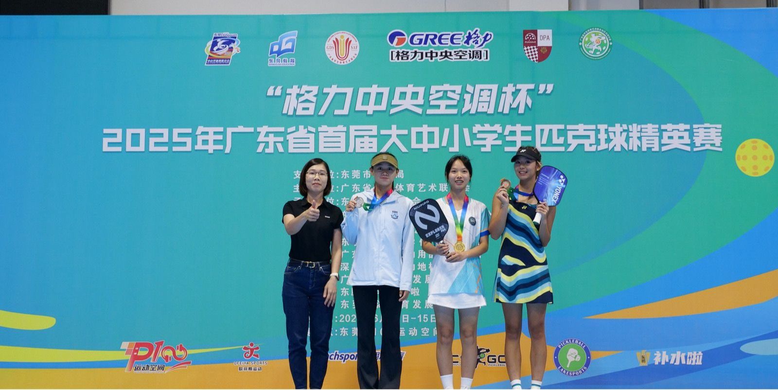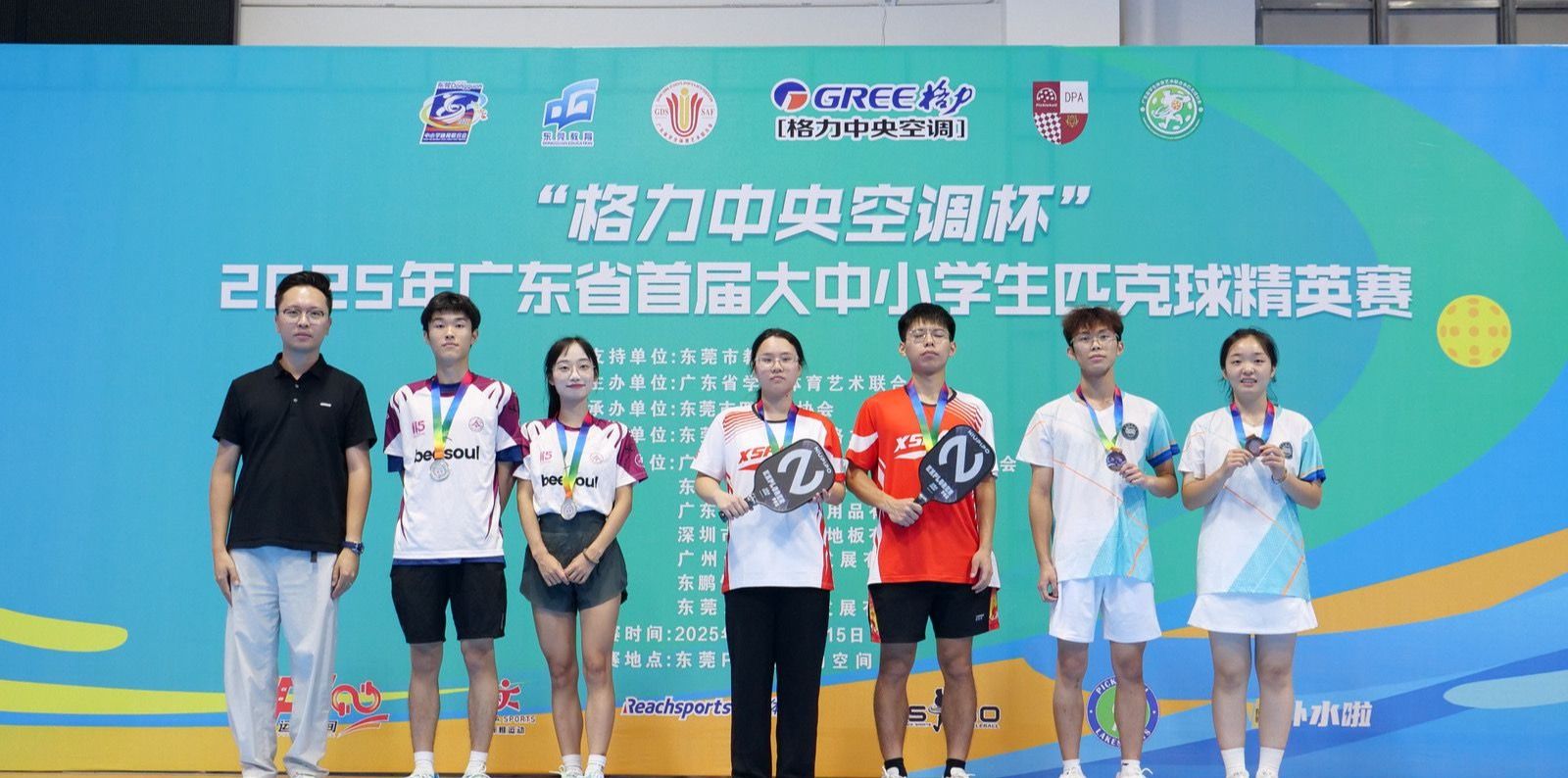 本网讯(体育学院新闻中心)6月14-15日,“格力中央空调杯”广东省首届大中小学生匹克球精英赛在东莞格力园区P100运动空间落下帷幕。面对台风来袭的严苛天气,yabo鸭脖官网匹克球队由杨波副院长担任领队,魏昆亮、焦健华、王发全三位教练率领五名队员出征,豪取乙组女子单打冠军、甲组混合双打季军,并在甲、乙组女子单打双双获得第五名,为学校带回“一金一铜”的佳绩。