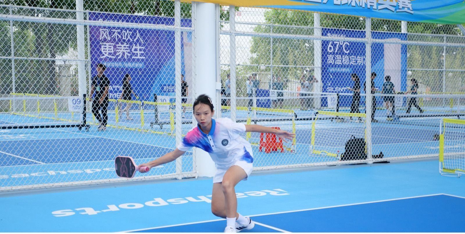 作为广东省首次覆盖小学至大学全学段的匹克球盛会,赛事吸引了全省近百所学校、逾500名选手同台竞技,设有男、女单打、双打与混双等项目,赛制采取小组循环与交叉淘汰结合。台风带来的骤雨与场内紧张的比分交织,选手们在两天的鏖战中凭借出色的体能与心理素质,奉献出一拍又一拍精彩对决。