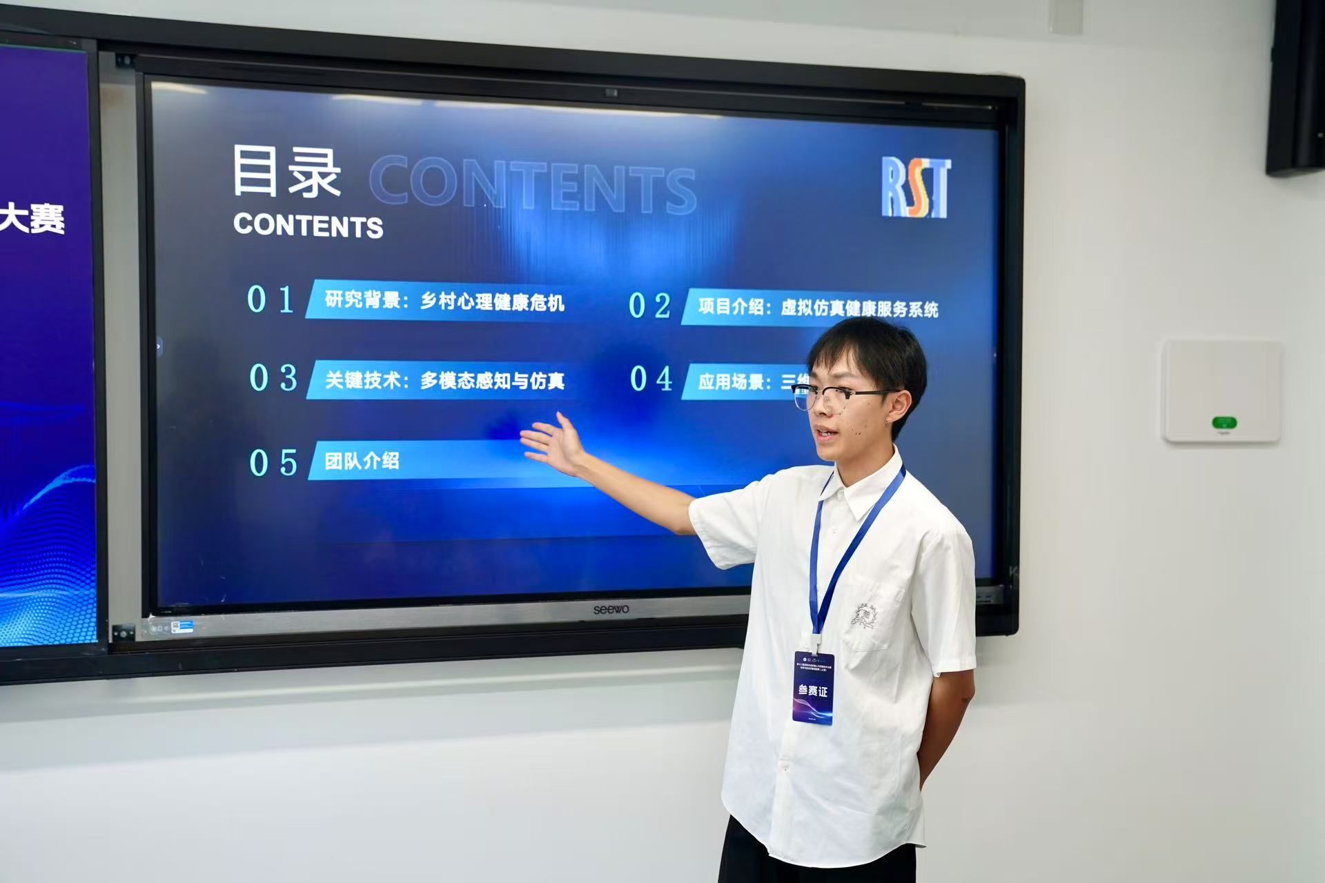 在7月15-16日的展示环节,参赛队伍分别在健康服务系统虚拟仿真、运动与人机交互方案、智慧体育教学与训练模拟、AI+体育知识科普创意四大赛道依次亮相。yabo鸭脖官网“体育与运动仿真战队”的作品聚焦乡村青少年心理健康,借助XR与数字孪生技术复刻鼎湖山湿地等自然场景;学生沉浸体验的同时,系统实时采集心率变异性、皮电等生理指标,动态推送正念呼吸引导并自动调节任务难度,最终生成专注力与情绪稳定性曲线等个性化报告,形成“课前匹配—课中干预—课后追踪”的闭环服务。凭借清晰的应用场景和良好的推广价值,作品在展示答辩环节获得评委一致认可,荣获国赛三等奖。