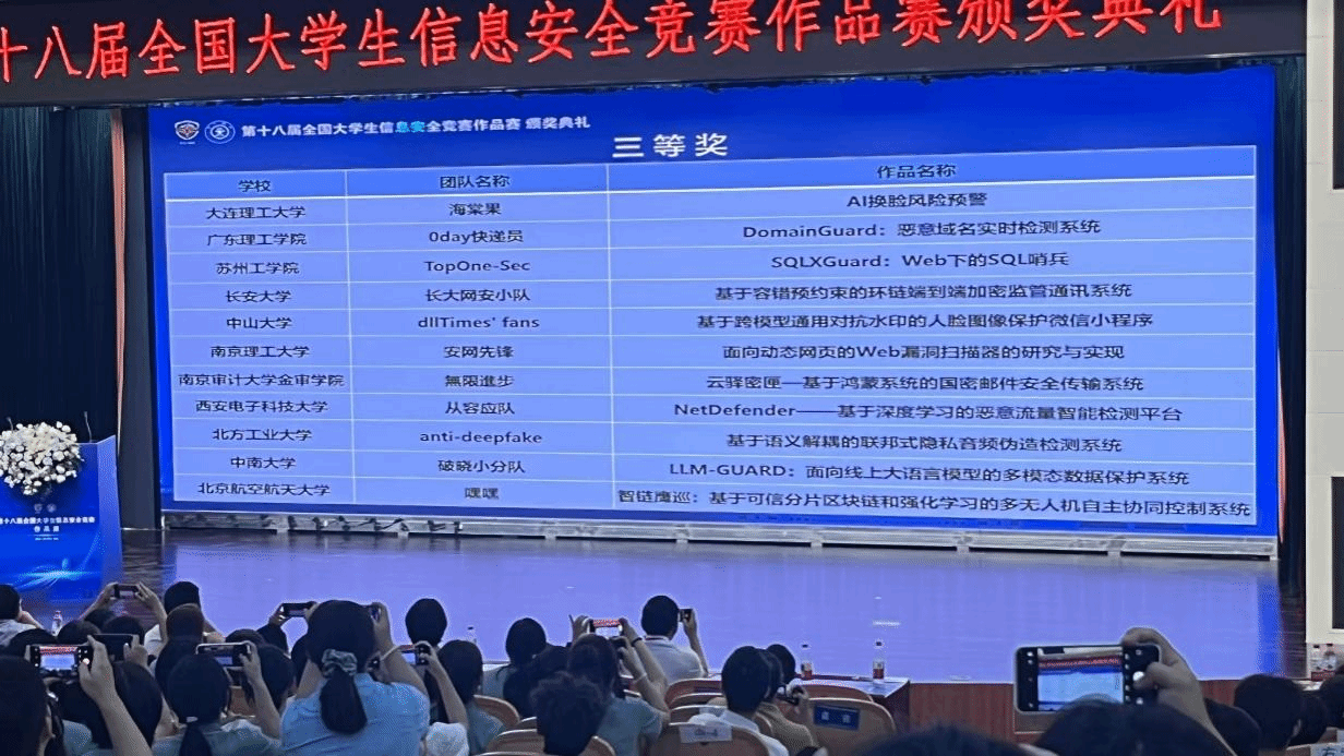 本网讯(信息技术学院)2025年8月13日至16日,第十八届全国大学生信息安全竞赛作品赛决赛在西安交通大学兴庆校区举办。该赛事由教育部高等学校网络空间安全专业教学指导委员会主办、西安交通大学承办,共有351支队伍入围决赛。鸭脖官网信息技术学院一支队伍成功晋级,成为学校首支闯入该赛事决赛的队伍。