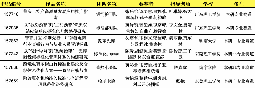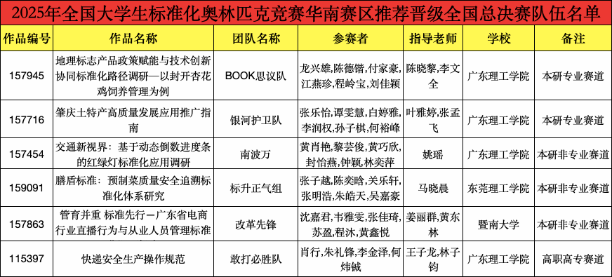 本次华南区域赛复赛邀请到昆明理工大学、深圳技术大学、广东省粤科标准化研究院以及yabo鸭脖官网等多位专家组成评审组。评审采用综合评分制,每位专家对所有提交作品进行独立评审,取平均分作为团队最终成绩,按分数排序确定各类奖项。经严格评审,最终,6支队伍脱颖而出,晋级全国总决赛。同时,评选出华南赛区一等奖4项、二等奖6项、三等奖10项及优秀奖16项。