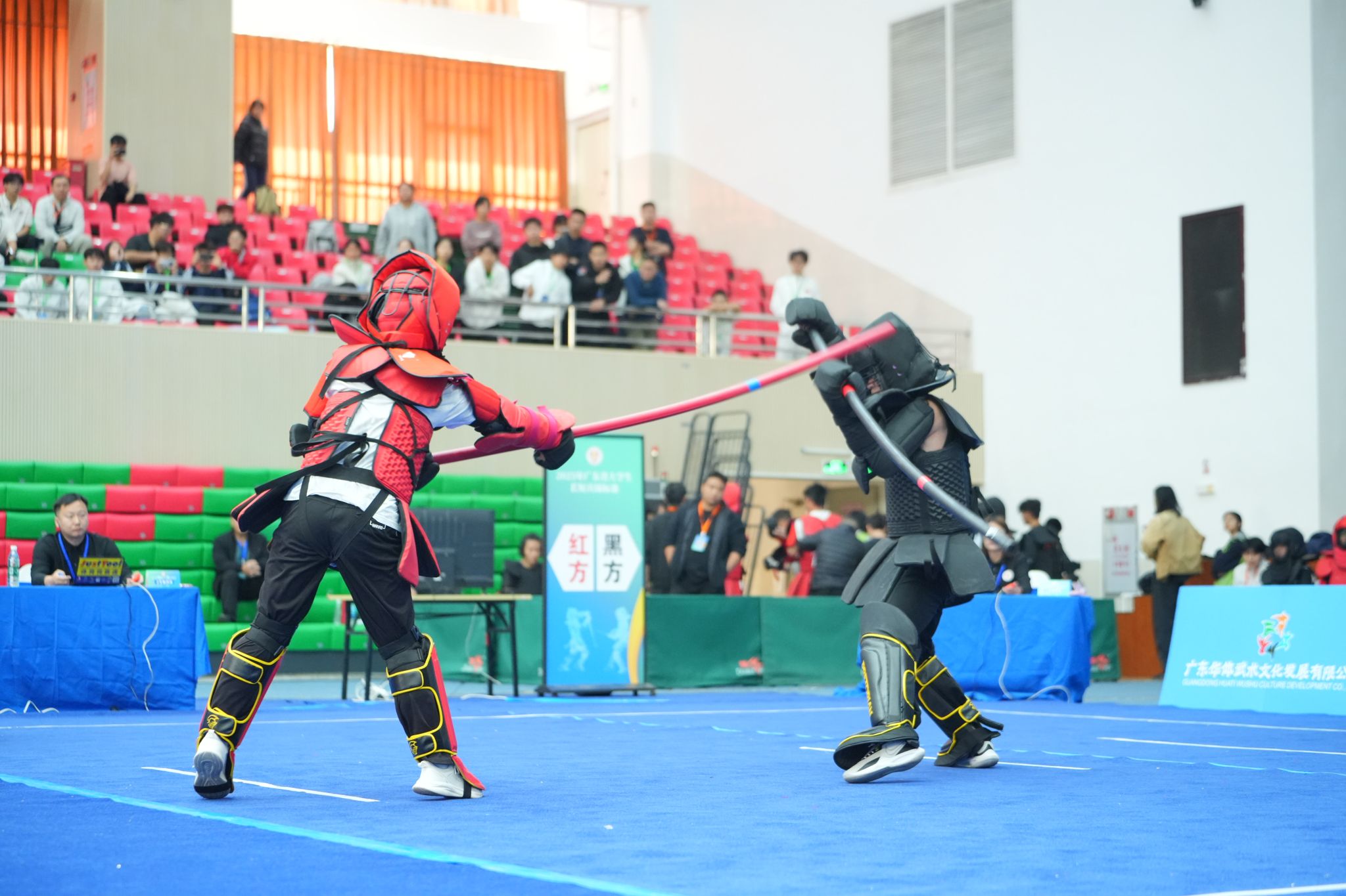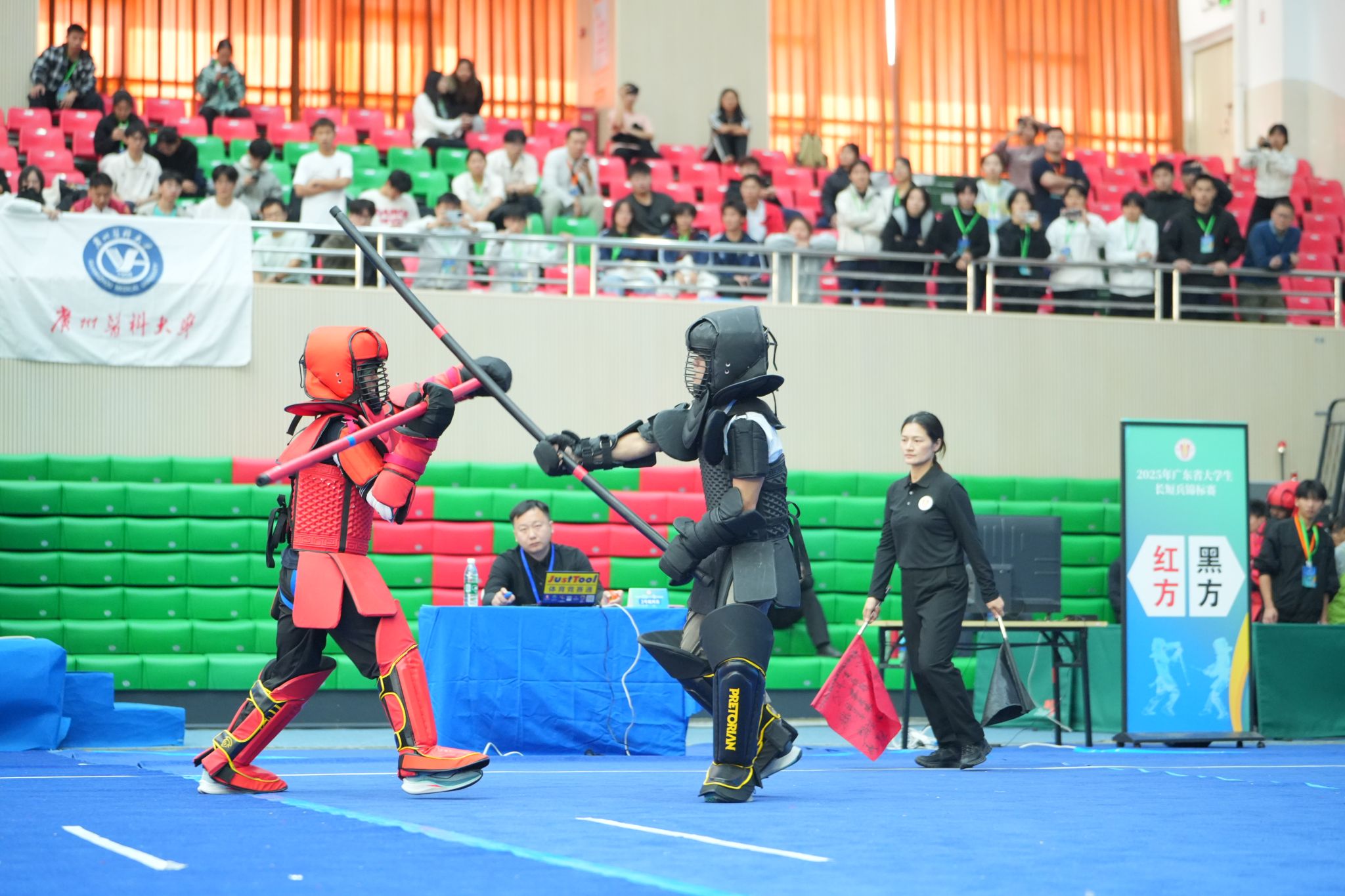 本网讯(体育学院 梁洁晶)近日,2025年广东省大学生武术长短兵锦标赛于11月21日至23日在广东科技学院举行。本届赛事在广东省教育厅指导下,由广东省学生体育艺术联合会主办,广东科技学院承办,并得到广东省学生体育艺术联合会武术分会与广东华体武术的协办支持。全省40所高校的461名运动员齐聚一堂,在甲组、乙A组、丙组三个组别及男女各8个公斤级别中展开激烈角逐,赛事规模为历届之最。