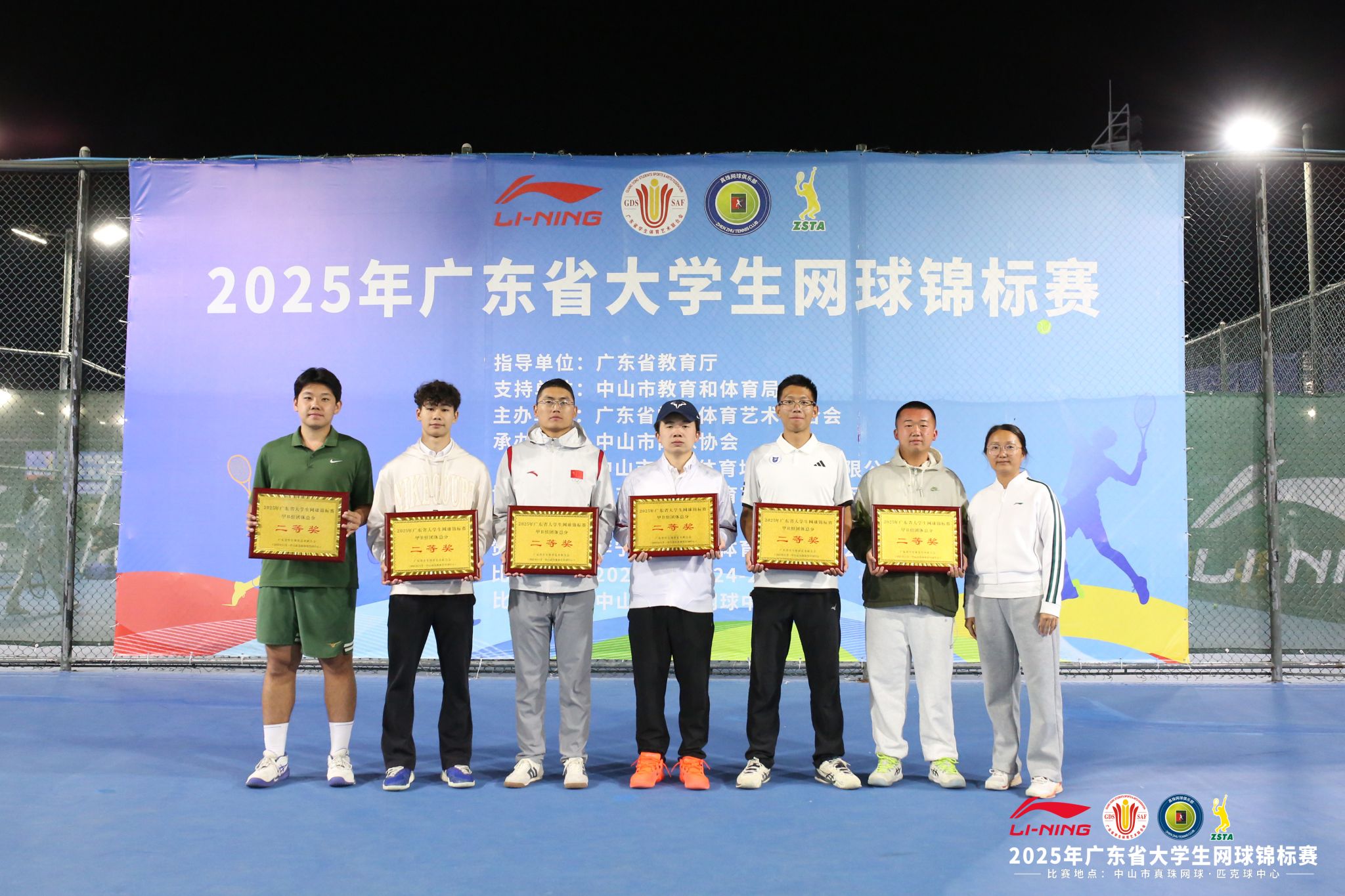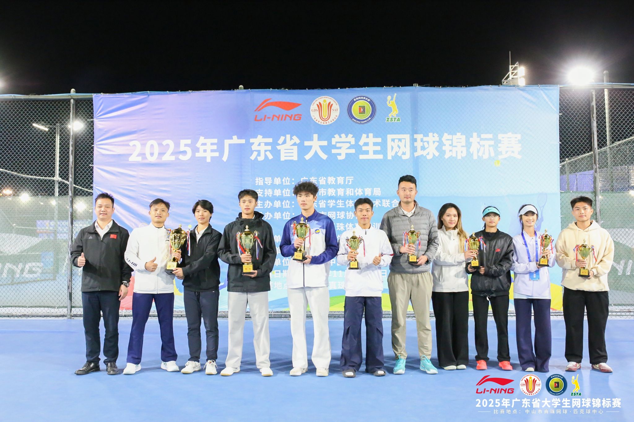 本网讯(体育学院)由广东省学生体育艺术联合会主办的2025年广东省大学生网球锦标赛在中山真珠网球中心圆满落幕。本次赛事于11月24日至28日激情开赛,汇聚全省高校646名网球精英同台竞技。yabo鸭脖官网网球队由体育学院院长肖斌担任领队,夏磊、刘涛、胡进城三位老师担任教练员,派出18名运动员参赛,凭借扎实的技术功底、默契的团队协作与顽强的拼搏精神,在各组别赛事中捷报频传,最终斩获乙A组团体总分一等奖,甲B组团体总分二等奖。用实力书写青春荣光。
