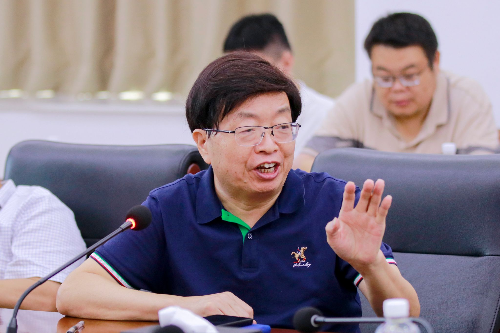 本网讯(教学质量监测与评估中心)7月11日上午,学校在高要校区综合楼12楼会议室召开本学期第8次本科教学工作合格评估推进会。在校的全体校领导、党群及行政管理服务部门主要负责人、教辅单位主要负责人、教学单位党政领导班子、教学质量监测与评估中心全体成员参加会议,会议由学校常务副校长柴维斯主持。