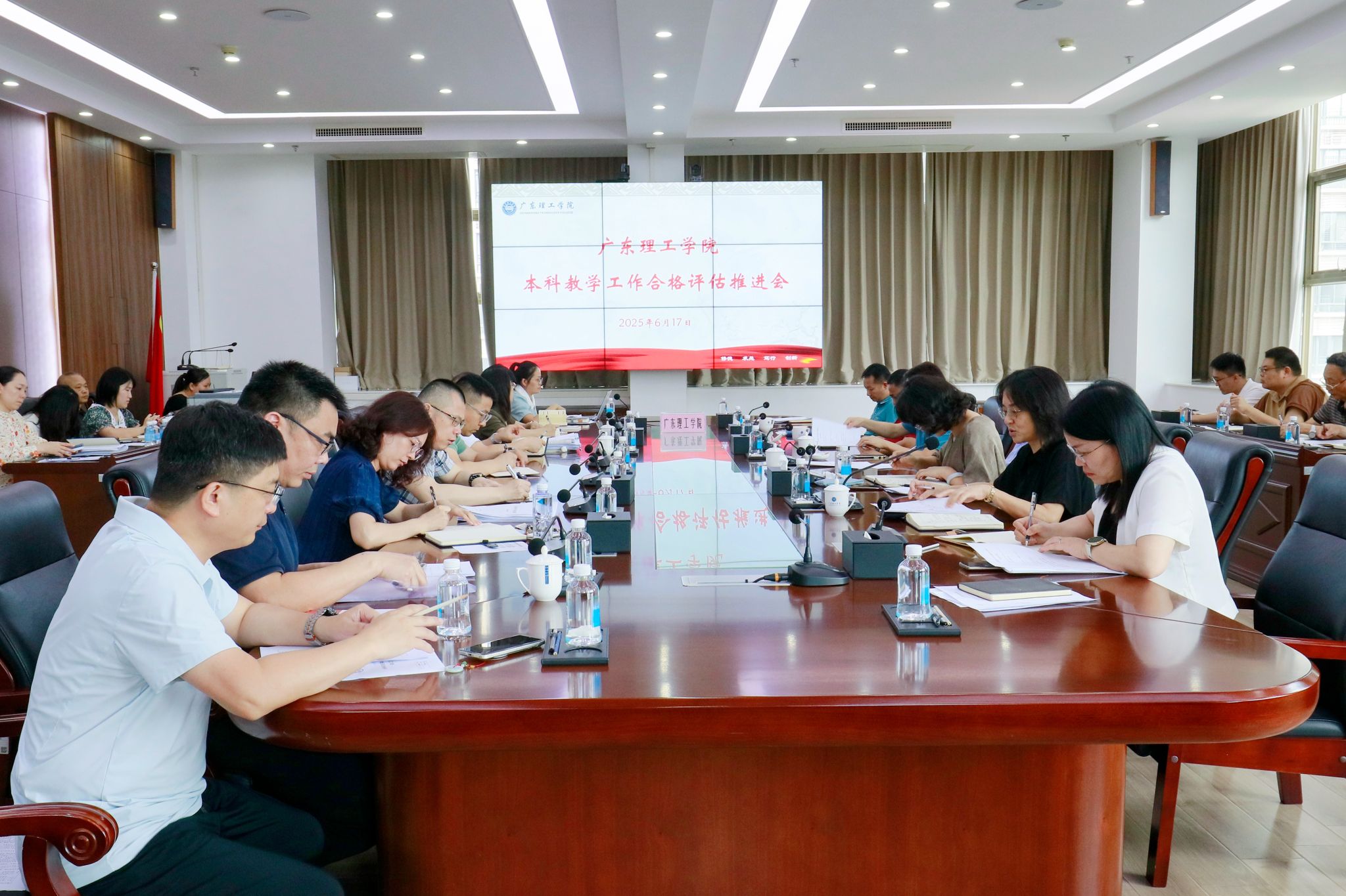 本网讯 6月17日上午,学校在高要校区综合楼12楼会议室召开本学期第6次本科教学工作合格评估推进会。中国科培教育集团李艳总裁、在校的全体校领导、党群及行政管理服务部门及教辅单位主要负责人、各教学单位党政主要负责人、二级学院副院长、各牵头部门及教学单位预评估联络员、教学质量监测与评估中心全体成员参加会议,会议由学校常务副校长柴维斯主持。柴维斯首先通报了截至6月16日学校的教学日常运行支出财务入账情况及各部...