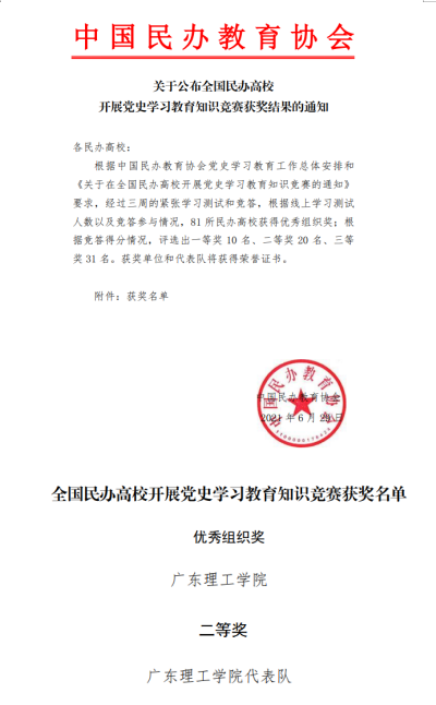 本网讯(组织部 莫停)6月28日,全国民办高校党史学习教育知识竞赛圆满结束。鸭脖官网党委派出的参赛队,取得了全国第十五名的优异成绩,荣获全国“二等奖”,学校荣获“优秀组织奖”。 鸭脖官网党委高度重视此次党史学习教育...