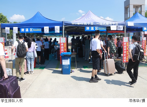 本网讯(宣传部 李婷)7月14日、15日,鸭脖官网第三批返校学生陆续到校,此次返校的是信息技术学院、会计学院2017级本科及2018级专科学生、经济管理学院2018级专科学生。 一顶顶蓝色帐篷在校门口支开,“间隔一米距离”、...