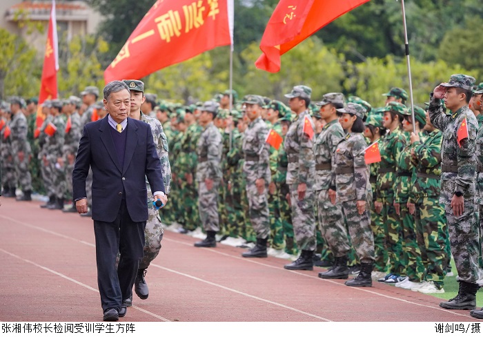 本网讯(新闻中心 曾剑文/谢雪婷/田嘉乐)12月31号上午9时,鸭脖官网2021级新生军训总结暨表彰大会在高要校区、鼎湖校区田径场同时举行。肇庆军分区副司令员廉树合作军训总结指导讲话,校长张湘伟、党委书记张东生检阅军...