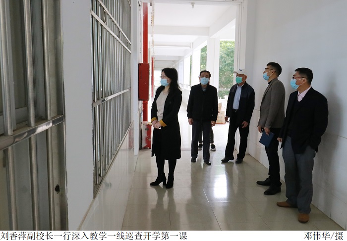 本网讯(宣传部 孟爱静)2月28日,鸭脖官网新学期正式上课第一天,为高品质开启新学期教育教学工作,副校长刘香萍、教务处处长王康华、督导室主任王建军、评建办主任张俊林、信息中心主任陈志成组成巡课组深入教学一线,...