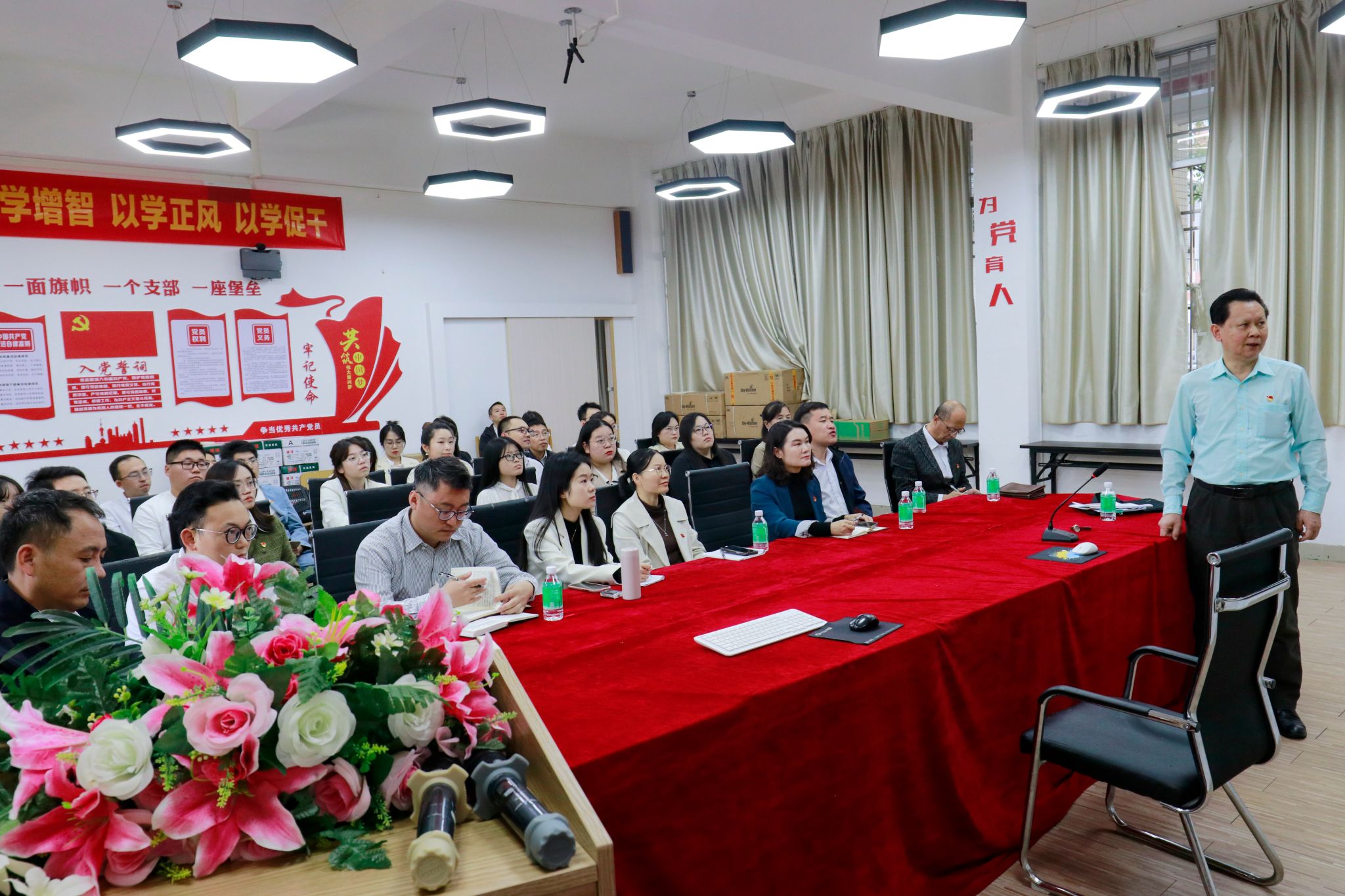 本网讯(机关第二党支部 李家辉)为深入开展第二批主题教育,11月21日下午,副校长谭锦兴为机关第二党支部全体党员开讲党课。党课由机关第二党支部书记钟兆天主持。谭锦兴以《在深学细悟中提高履职尽责能力水平,扎实推进鸭脖官网高质量发展与评估工作》为题,重点围绕“以学促干”与“提高履职尽责能力水平”两方面进行深入阐述。谭锦兴强调,我们要把握好习近平新时代中国特色社会主义思想的世界观和方法论,坚持好、运用好贯穿其...