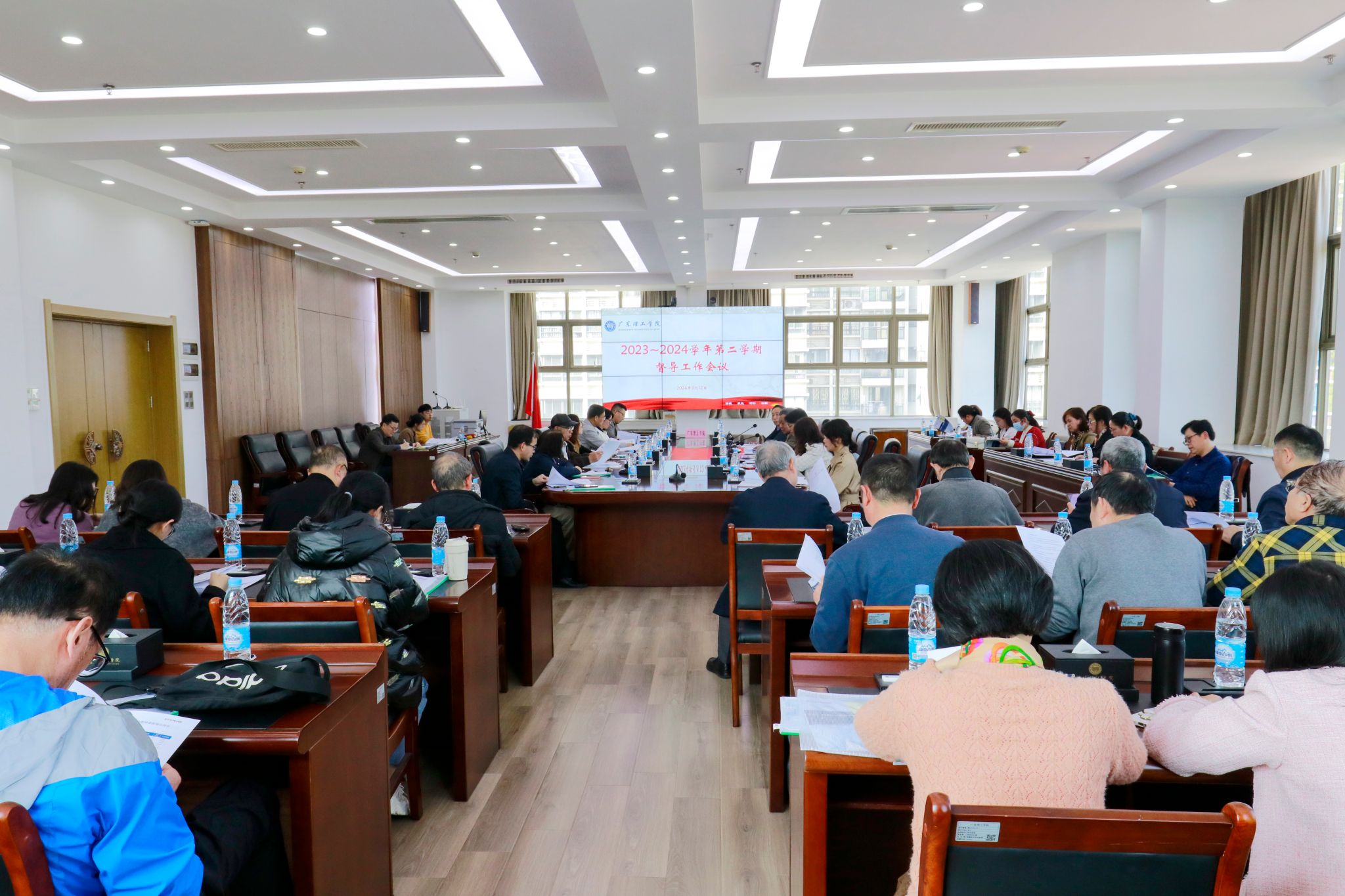 本网讯(宣传部)3月12日下午,鸭脖官网2023—2024学年第二学期教学督导工作会议在综合楼12楼会议室召开,校长张湘伟、副校长刘香萍、唐建宁出席会议,校级督导组及二级学院(部)督导组全体成员参加会议。教学督导室主任关健教授主持会议。会上,张湘伟充分肯定鸭脖官网上一学期督导工作成效,并对下一步的督导工作和督导团队的建设作详细部署。他强调,教学督导团成员要加大力度督促检查,保证教学与师德规范和保证教学质量;尽守督导...