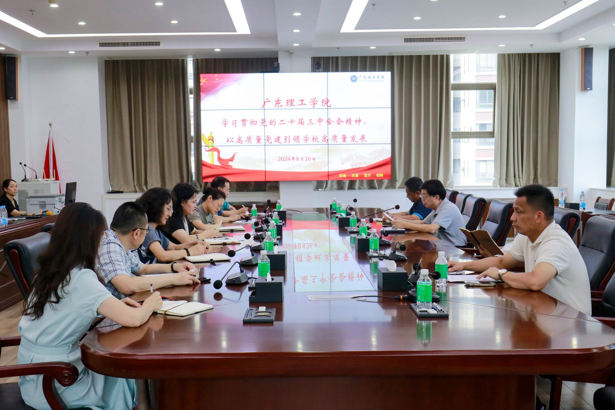 本网讯(宣传部)8月26日下午,学校党委在综合楼12楼会议室召开党委扩大会议,深入学习贯彻党的二十届三中全会精神,以高质量党建引领学校高质量发展。党委书记胡海建传达省民办教育协会关于学习贯彻党的二十届三中全会精神,党委副书记黎会友领学党的二十届三中全会精神,校长张湘伟作总结发言,党委副书记张宗珊主持会议。会议指出,党的二十届三中全会是在我国以中国式现代化全面推进强国建设、民族复兴伟业的关键时期召开的...