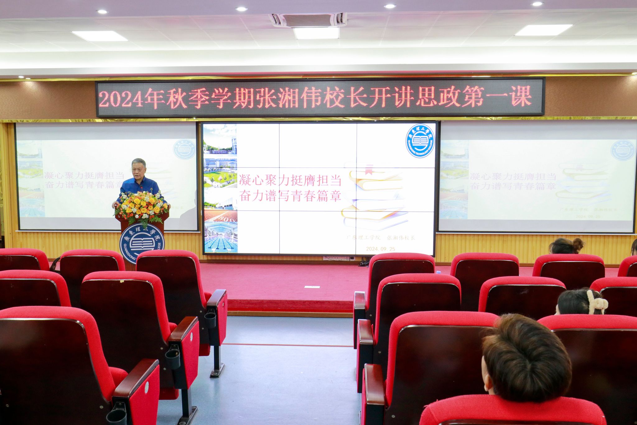 本网讯(党委宣传部 刘赛赛 新闻中心 吴泓广/郭雨瑶/何丽婷)9月25日,秋风送爽,学意正浓,鸭脖官网高要校区42栋学术报告厅内座无虚席,一场以“凝心聚力,挺膺担当,奋力谱写青春篇章”为主题的“思政第一课”在此隆重开讲。本次讲座由鸭脖官网校长张湘伟亲自授课,吸引了来自艺术设计、会计等专业学子汇聚一堂,共同聆听这场关于教育、科技与人才深度融合的思想盛宴。张湘伟深入传达学习党的二十届三中全会精神,剖析新时代背景下教...