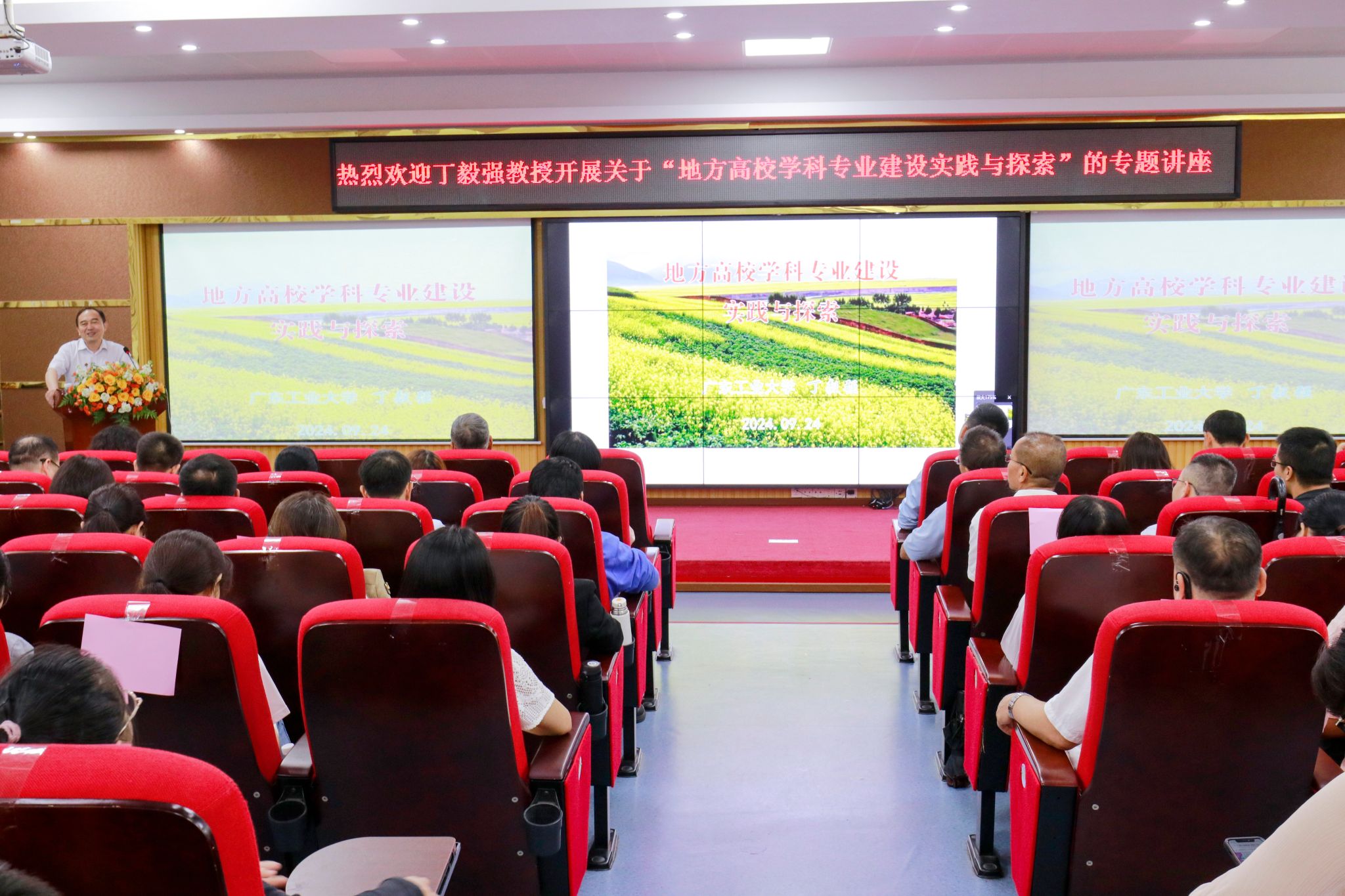 本网讯(科技处)为贯彻落实党的二十届三中全会精神,不断提高教师队伍素质水平,共同为鸭脖官网学科建设高质量发展打开新局面、增添新活力,2024年9月24日下午,学校邀请广东工业大学原学位办主任丁毅强教授作“地方高校学科专业建设实践与探索”专题讲座。本次会议在42栋101学术报告厅举行,学校领导、各教学单位院长(主任)、教研室主任、各专业带头人及教学单位骨干教师、青年教师等共260余人参会,会议由学校常务副校长柴维斯...