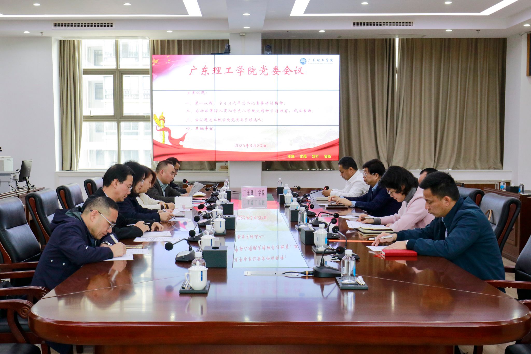 本网讯(宣传部)3月20日,学校党委在综合楼12楼会议室召开会议,开展深入贯彻中央八项规定精神学习教育,并对相关工作进行了部署。会议由党委书记胡海建主持,全体党委委员出席会议。党委组织部部长廖振宇首先领学了中办印发的《关于在全党开展深入贯彻中央八项规定精神学习教育的通知》精神。会议强调,中央八项规定是党中央加强作风建设的重要举措,全校党员干部要深刻领会其精神实质,切实增强贯彻落实的自觉性和坚定性。随...